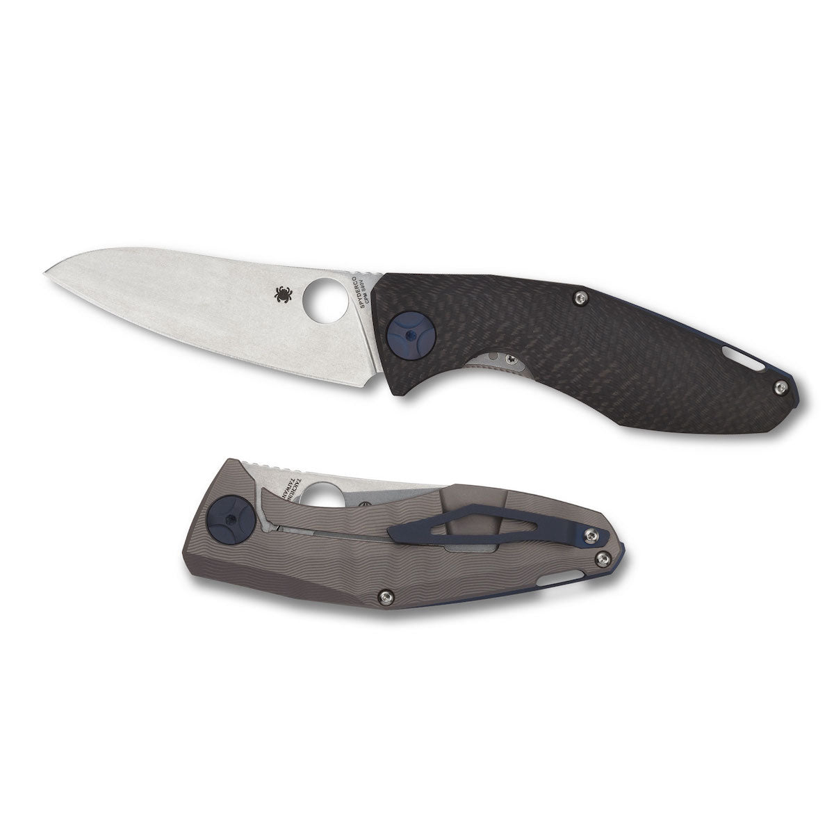 Custom knifemaker Dmitry Sinkevich’s first Spyderco collaboration, the Drunken™, is a fusion of artistic design and unparalleled craftsmanship. Its blade is full-flat ground from CPM® S90V® stainless steel and features a handsome tumbled finish. It is housed in a stylishly ergonomic handle that includes a titanium scale on one side and a solid carbon fiber scale and nested stainless steel liner on the other. The titanium scale is “webbed” to reduce weight and forms the basis for the knife’s Reeve Integral Lock™ (R.I.L.) mechanism, which includes a long-wearing stainless steel interface. Both scales are meticulously machined with an intricate “drunken” texture that gives the knife its name and are accented by color-anodised handle hardware.