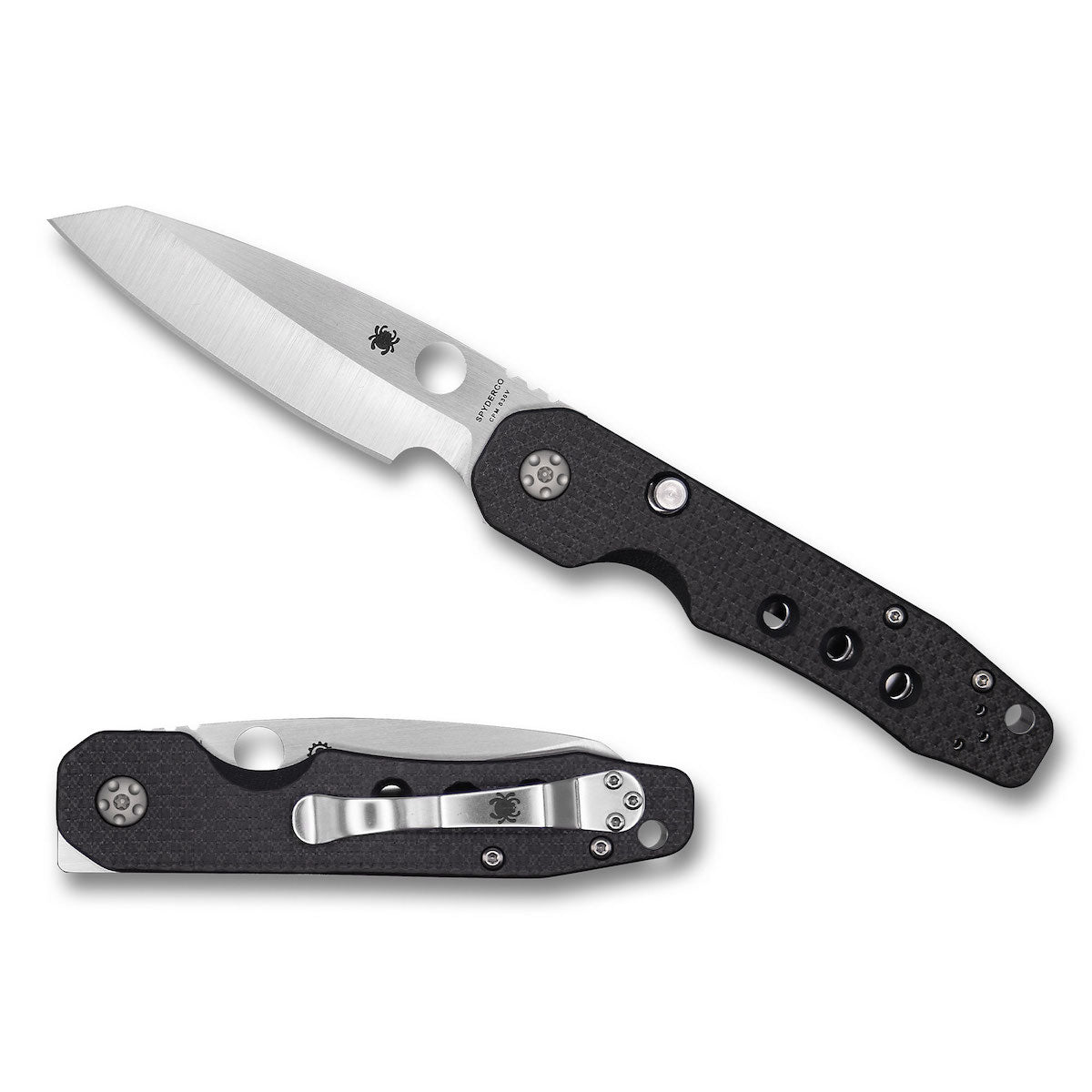 Based on custom knifemaker Kevin Smock’s popular SK23, the Spyderco Smock translates his innovative style into a premium-quality production folder. Its hollow-ground blade is precision machined from CPM® S30V® stainless steel and includes both a Trademark Round Hole and an elegantly understated flipper opener. It is paired with a skeletonised handle featuring full stainless steel liners, textured carbon fiber/G-10 laminate scales, lightweight, open-backed construction, and a left/right, tip-up pocket clip. The Smock’s most unique feature, however, is the button release on its high-strength Compression Lock® mechanism, which allows the knife to be safely and easily closed without placing your fingers near the blade’s edge.