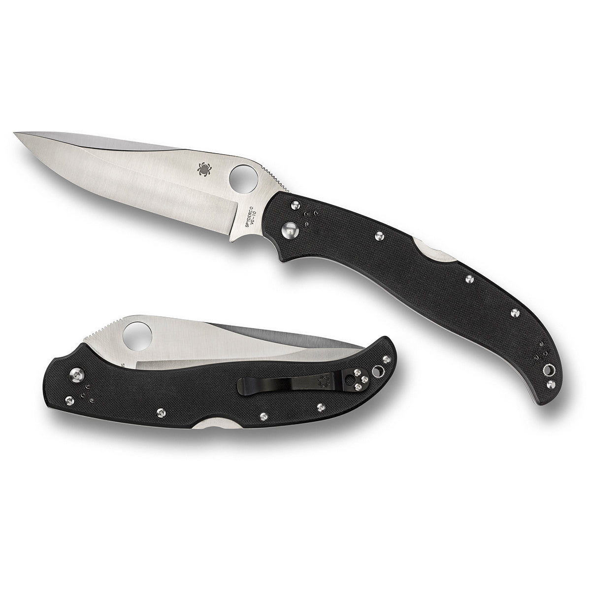 Meaning “American bison” in the Lakota Sioux language, “Tatanka” is also the name of Spyderco’s first “super-sized” folder. Its defining feature is its high-strength PowerLock™–a deceptively simple yet incredibly strong lock that at first glance looks like an ordinary back lock. Take a closer look, however, and you’ll see a secondary cam component that is the secret to the lock’s strength. When the blade is opened, the tang contacts a sturdy stop pin in the handle to stop its rotation. At the same time, the spring-powered lever in the back of the handle rotates the cam around its pivot, causing a finger at the bottom of the cam to wedge against a concave surface on the top of the tang. This wedging action creates an incredibly secure lock-up, yet allows the lock to be released smoothly and easily.